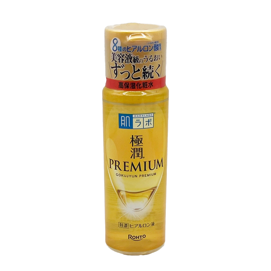 The Hada-Labo Gokujyun Premium Hydrating Lotion is a premium toner featuring eight forms of hyaluronic acid to intensely boost inner skin moisture. The gel-like texture instantly wraps the skin like a hydrating mask while the mildly acidic pH formula strengthens the skin's moisture barrier after cleansing. The consistency is richer than the Hada-Labo Gokujyun Hydrating Lotion, and is best for drier skin types.