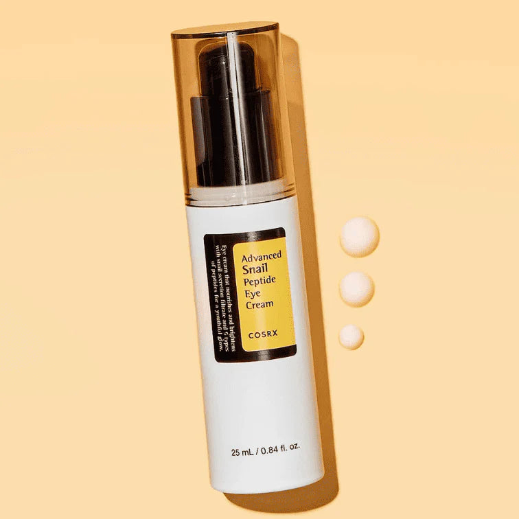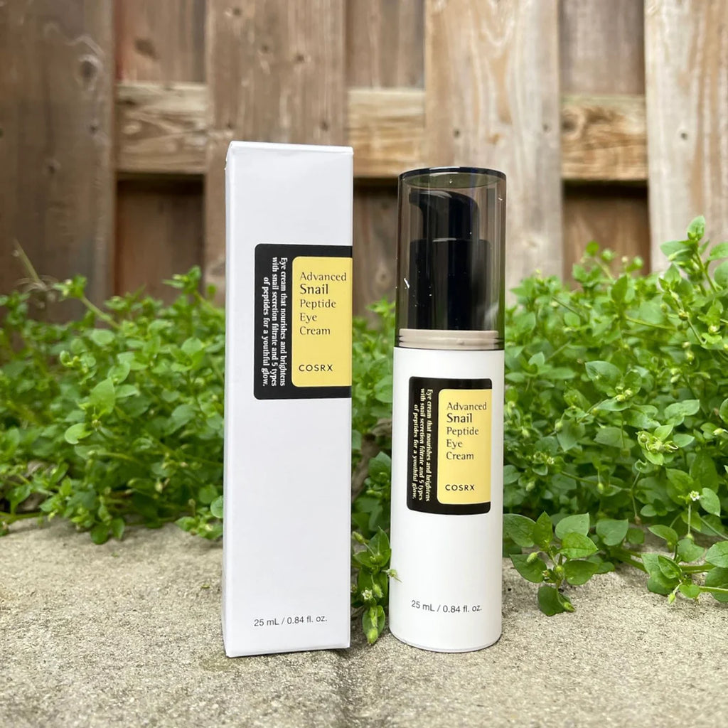 Experience the power of the COSRX Advanced Snail Peptide Eye Cream. This lightweight hydrator combines snail secretion filtrate, peptides, and niacinamide to moisturize, protect, and rejuvenate the delicate eye area. Reduce fine lines, brighten dark circles, and restore elasticity with this fast-absorbing, age-defying eye cream. Packaged in an airless pump for easy and hygienic application. Unlock the secret to youthful and vibrant eyes.