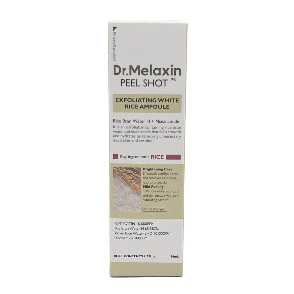 - Experience the dual benefits of exfoliation and hydration with the Dr.Melaxin Peel Shot Exfoliating Black Rice Ampoule. This innovative formula gently removes dead skin cells while delivering nourishing ingredients, leaving your skin feeling smoother and more radiant.